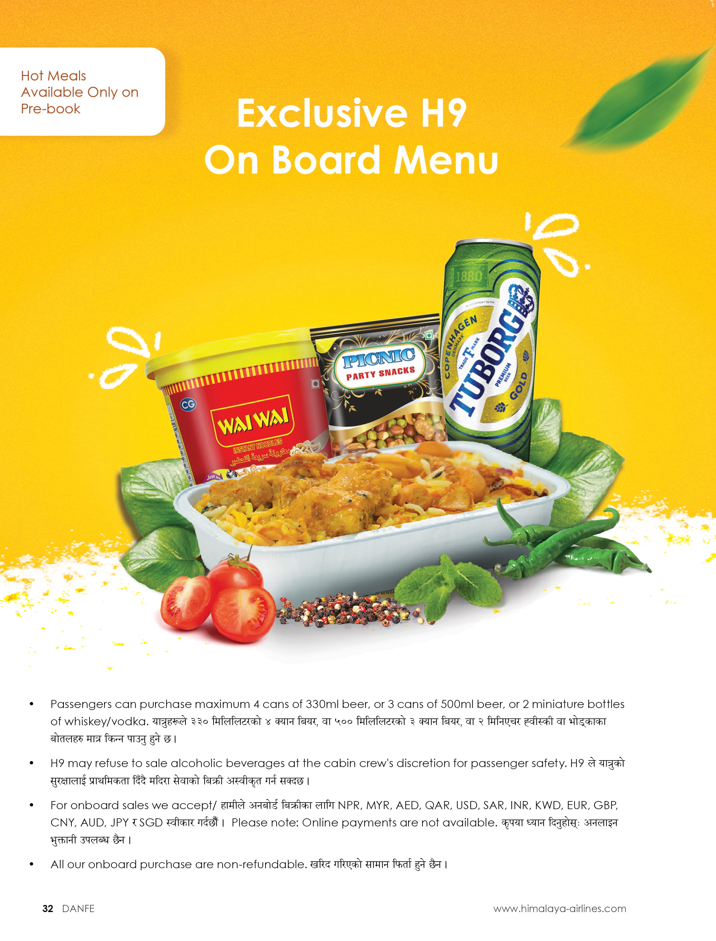 We bring to you assorted items that you can shop on board ranging from food and beverages to special H9 customized merchandise souvenirs. Happy Buying, Happy Flying!