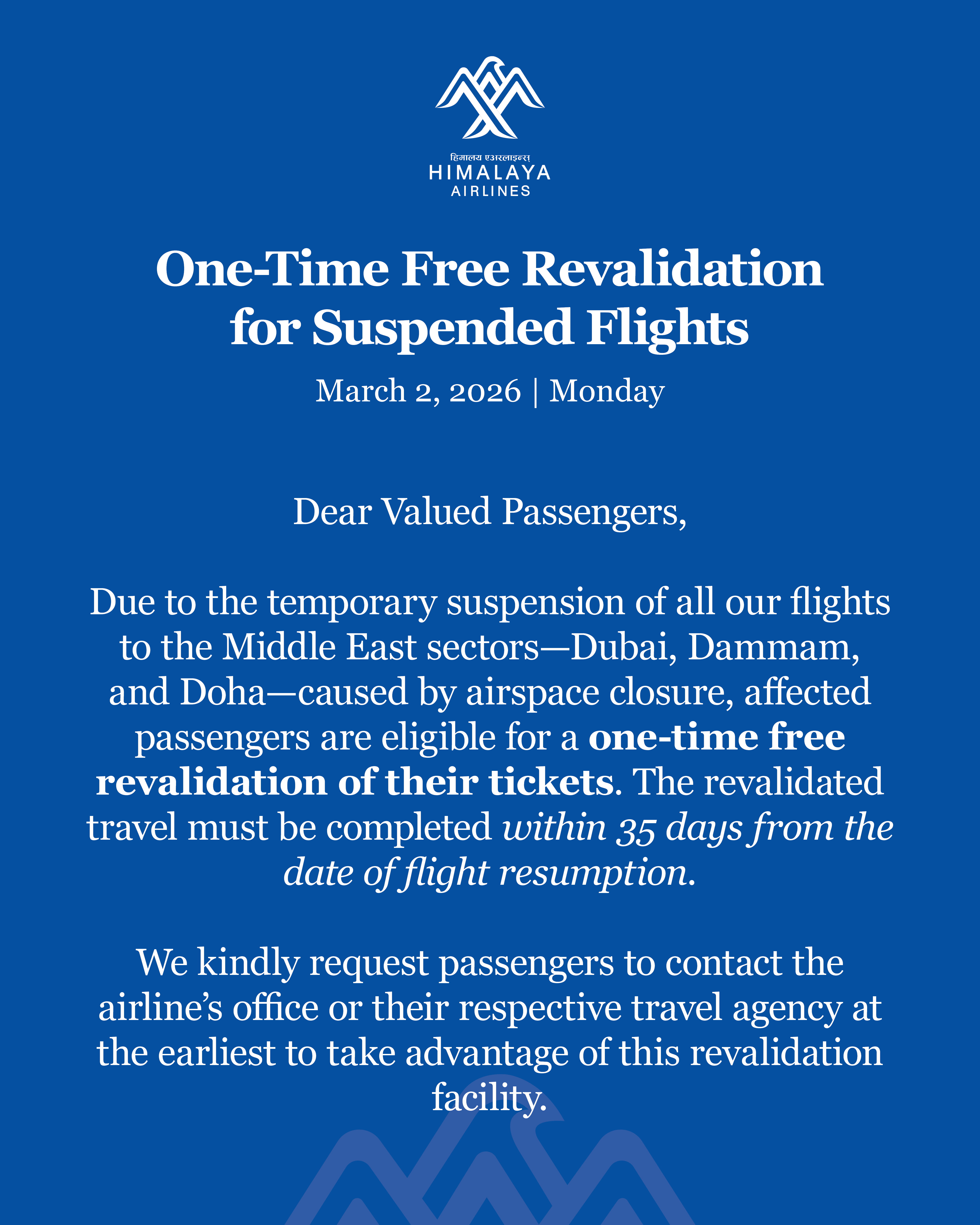 One-time Free Revalidation for Suspended Flight