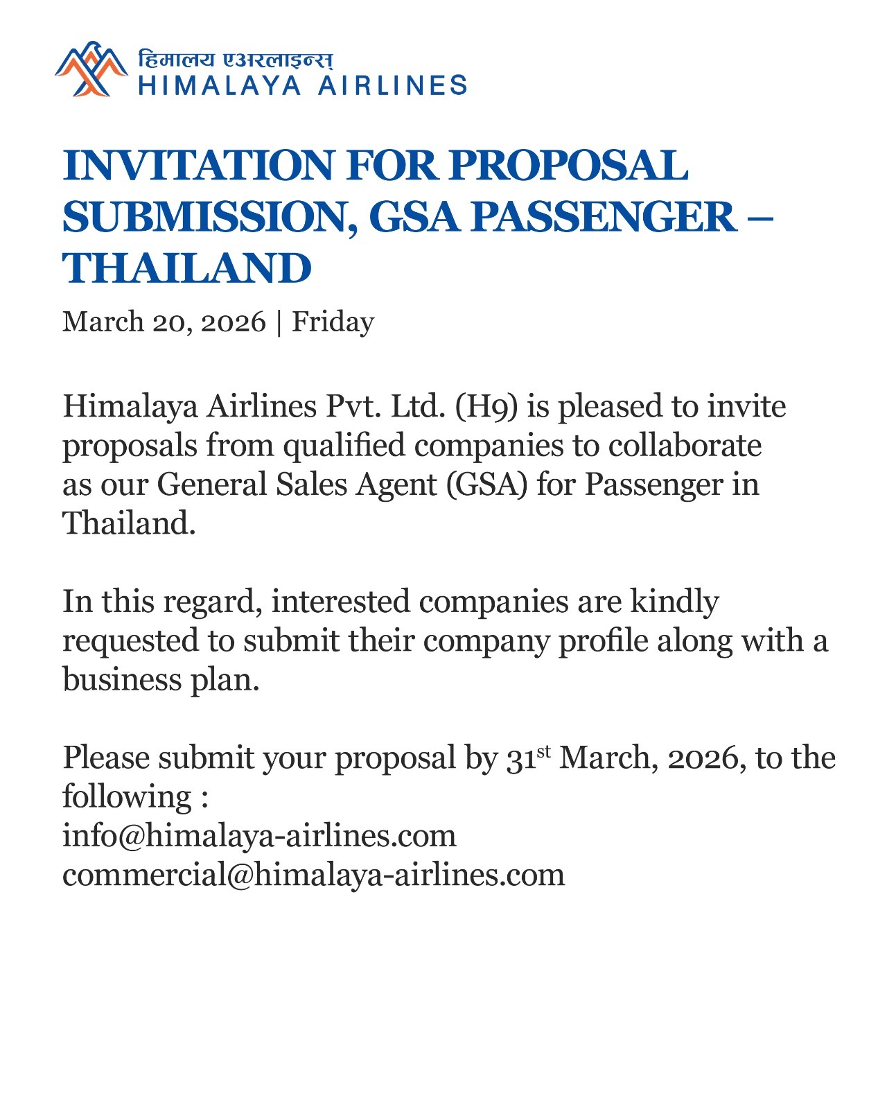 INVITATION FOR PROPOSAL SUBMISSION, GSA PASSENGER – THAILAND