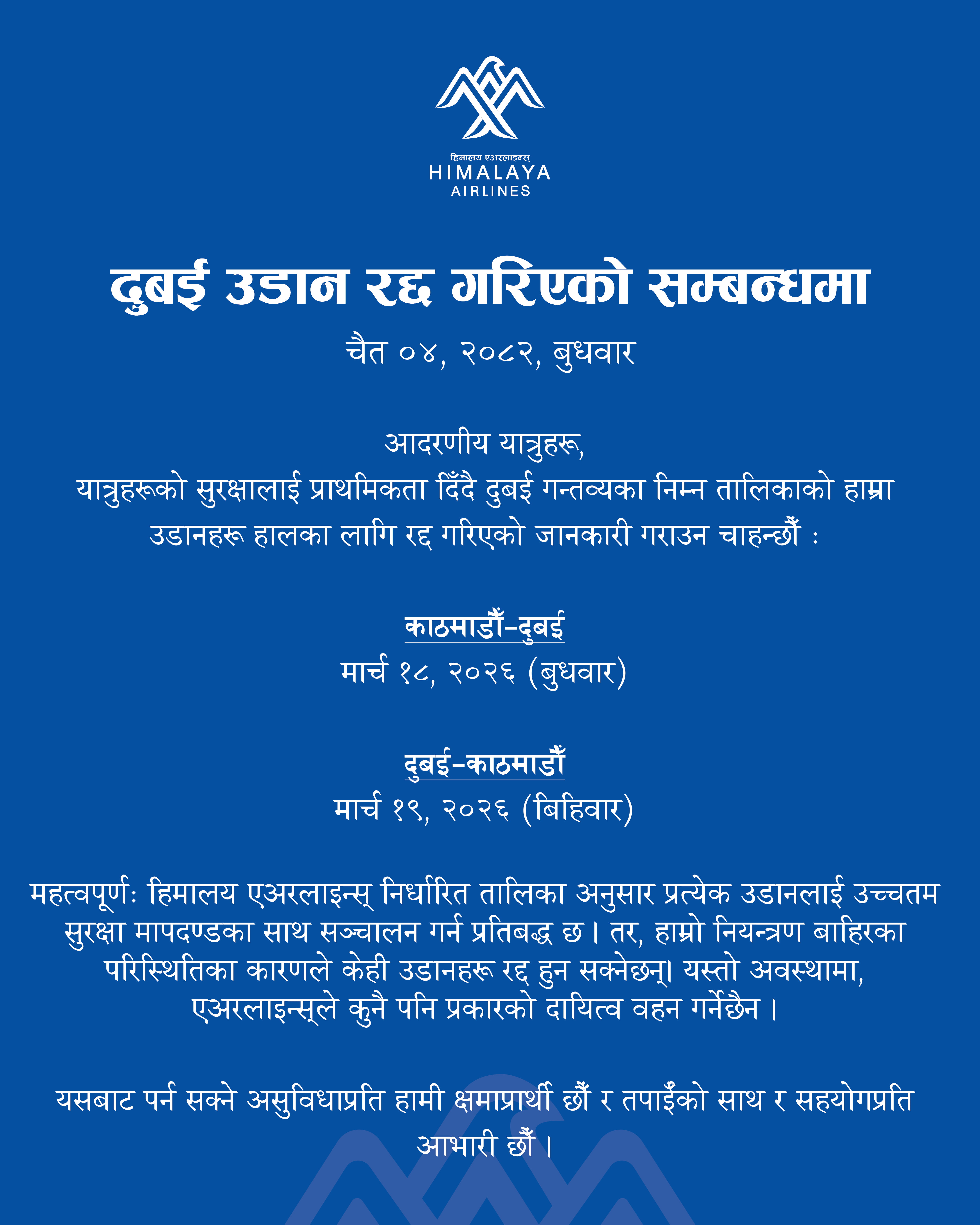 Next article: दुबई उडान रद्द गरिएको सम्बन्धमा