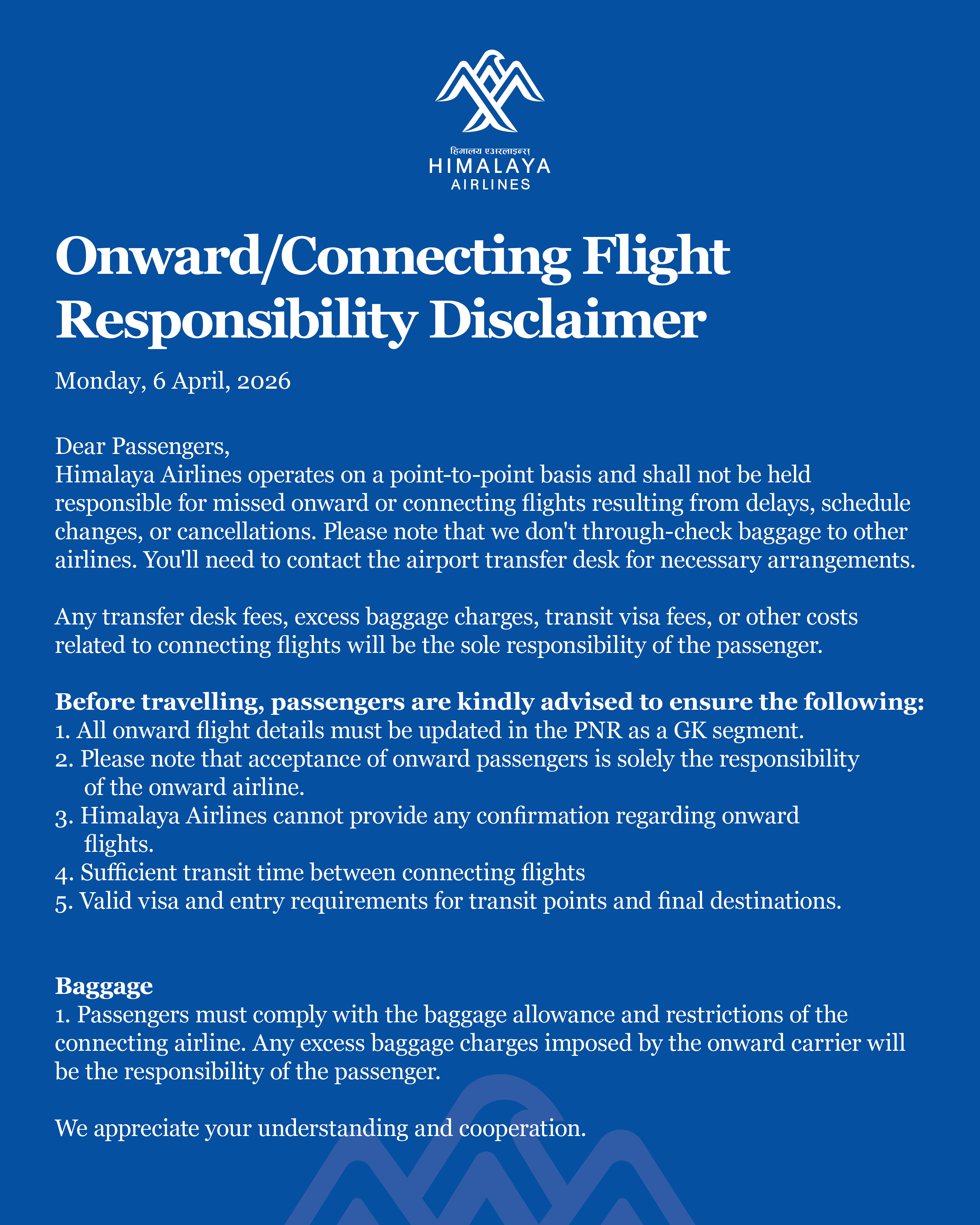 Onward/Connecting Flight Responsibility Disclaimer