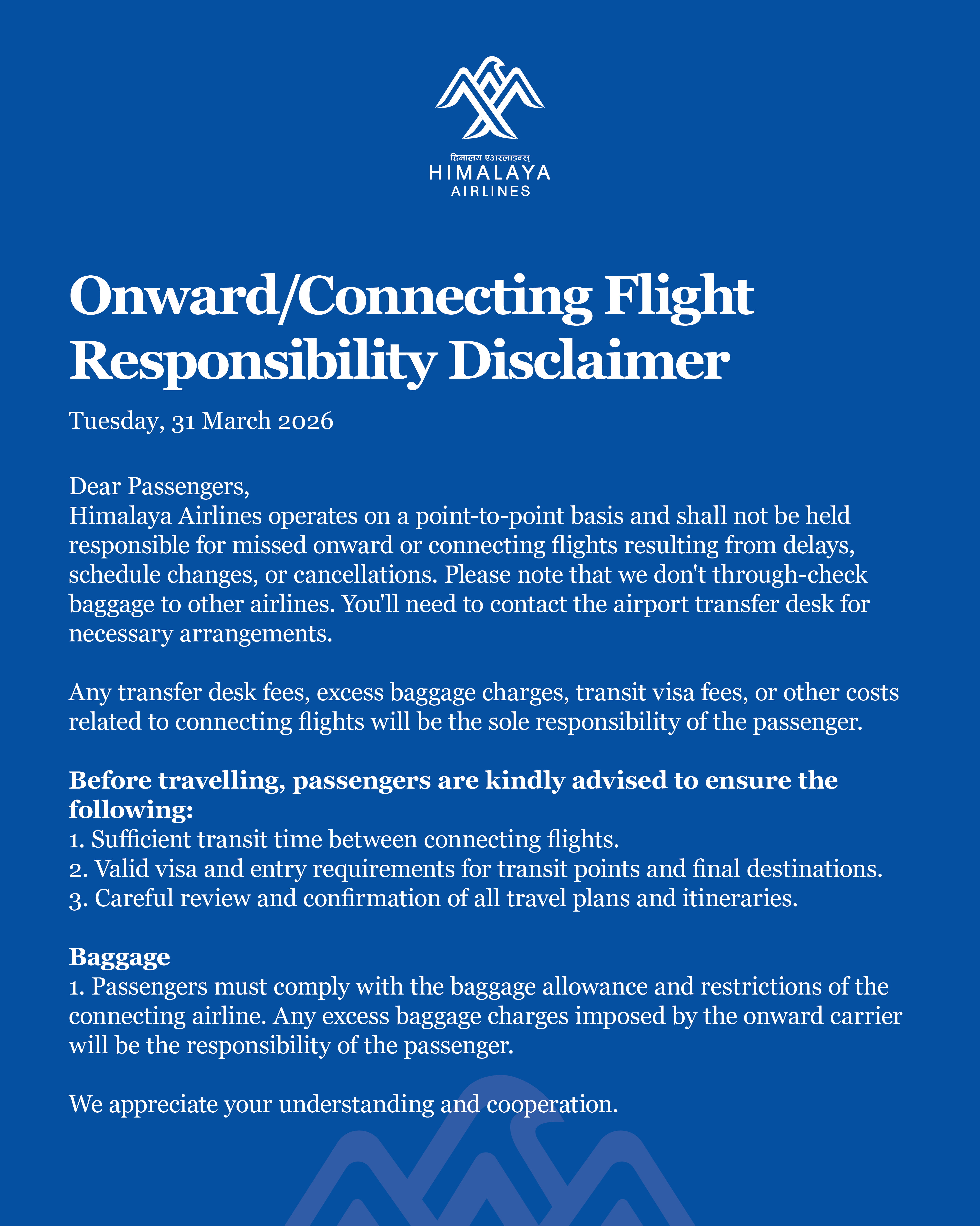Onward / Connecting Flight Responsibility Disclaimer